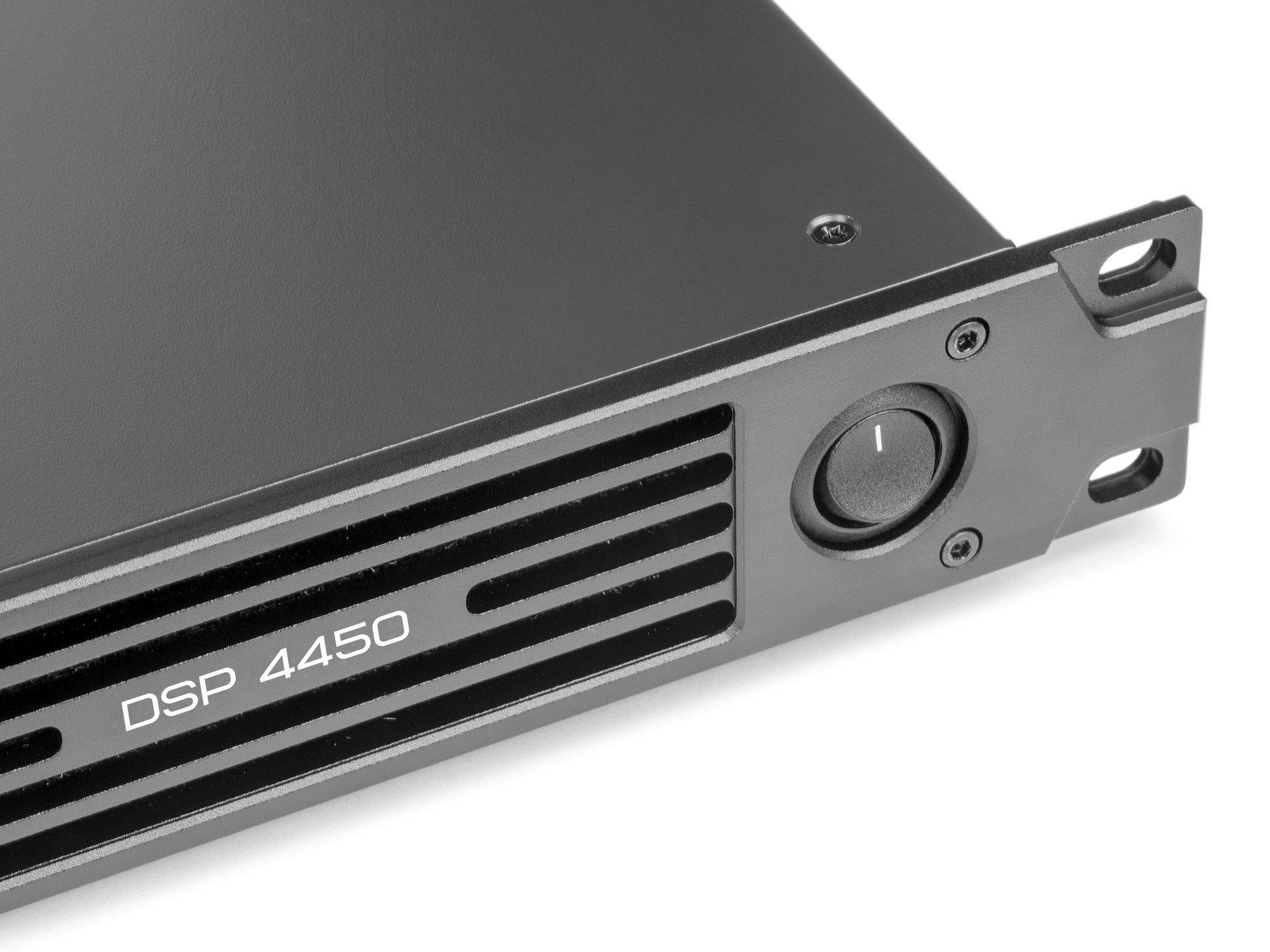 PREMIERA DSP4450 – четырехканальный усилитель мощности класса D со встроенным цифровым сигнальным процессором с номинальной выходной мощностью 450 Вт на канал при нагрузке 8 Ом (в режиме «стерео»)