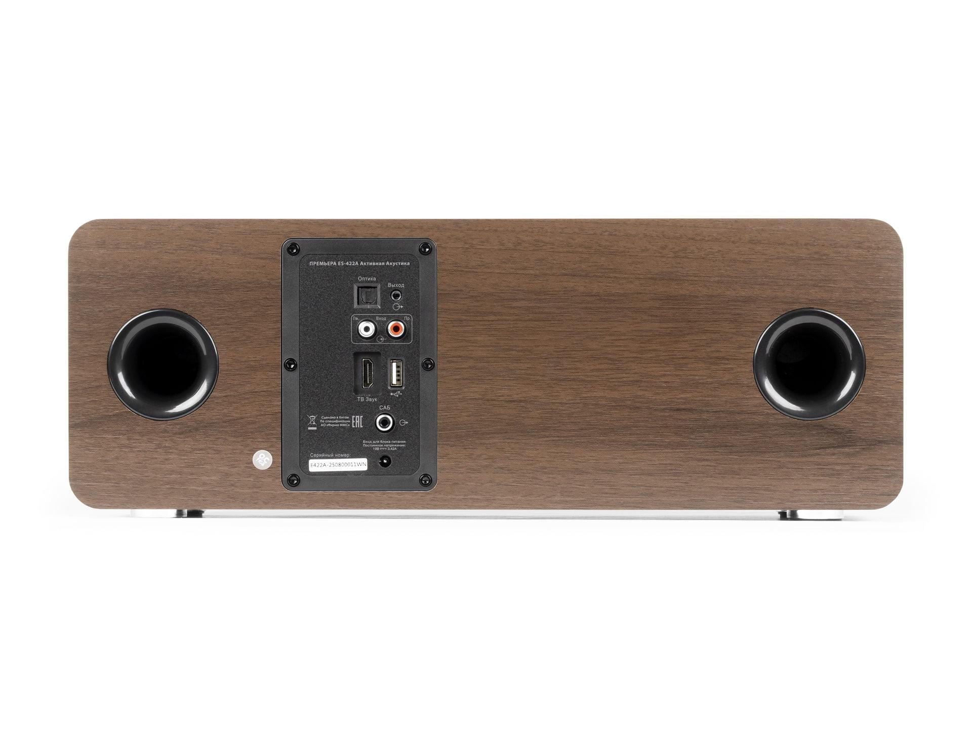 ES-422A имеет встроенный цифровой процессор DSP и оснащена Bluetooth, HDMI ARC, USB-A, оптическим и аналоговым входами, что позволяет использовать ее с различными источниками входного сигнала.