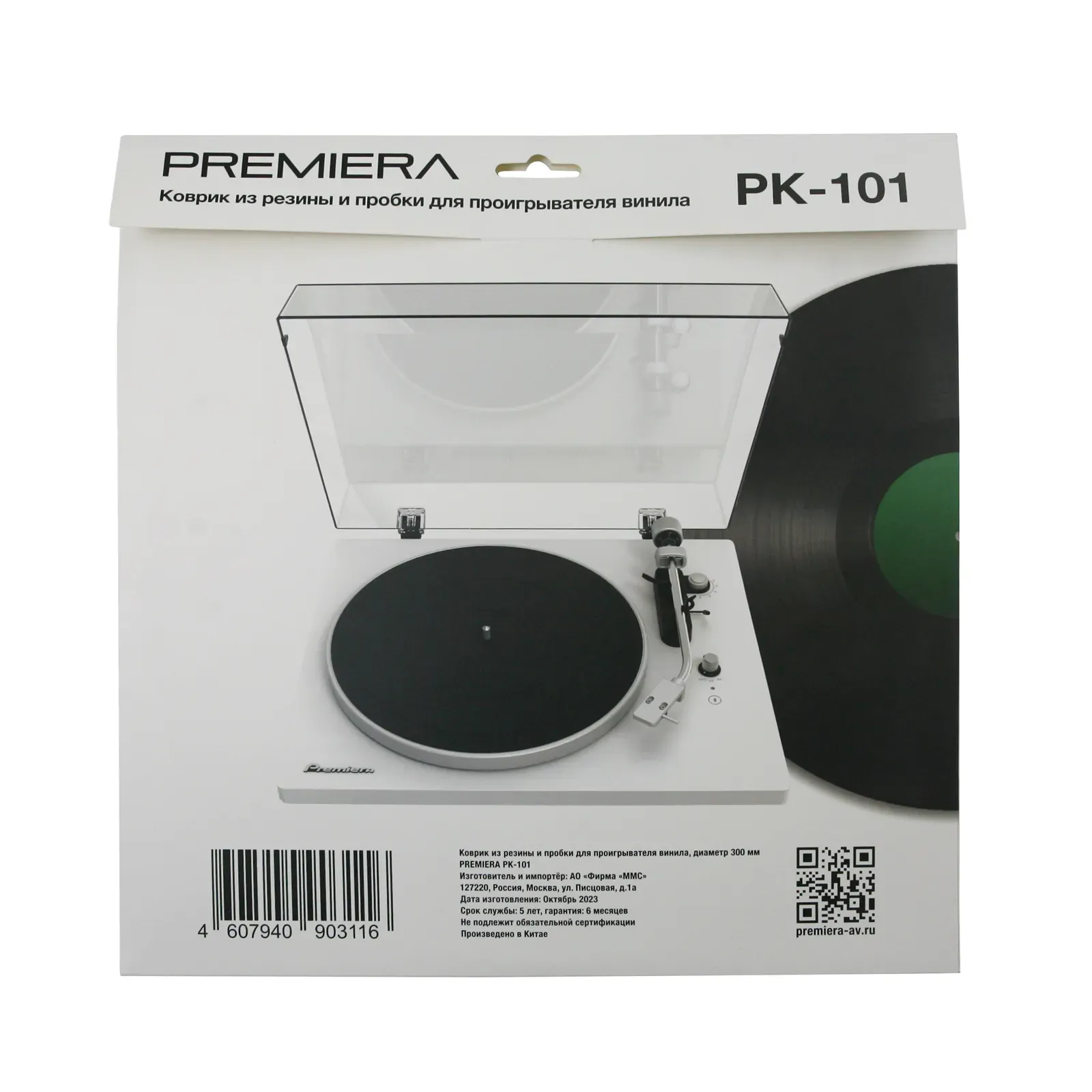 PREMIERA PK-101 - коврик (слипмат) для опорного диска винилового проигрывателя предназначен для устранения статического электричества, уменьшения вибраций и нежелательных резонансов, защищает виниловые диски от механических повреждений.